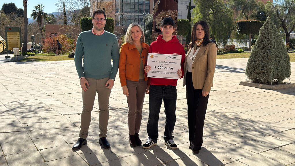 La Vicerrectora de Estudiantes y Empleabilidad de la Universidad de Jaén (UJA), Teresa Pérez Giménez, la Directora de Secretariado de Empleabilidad, Emprendimiento Estudiantil y Programa Alumni, Mª Rosa Vallecillo Gámez y el Director de la Cátedra de Emprendimiento Fulgencio Meseguer, Domingo Fernández Uclés, han hecho entrega hoy del premio nacional de 1.000 euros al alumno Juan Pedro Burgos Rus.